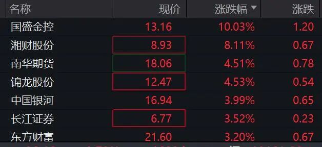 券商、保险等金融权重股发力拉升,券商股集体走强。
